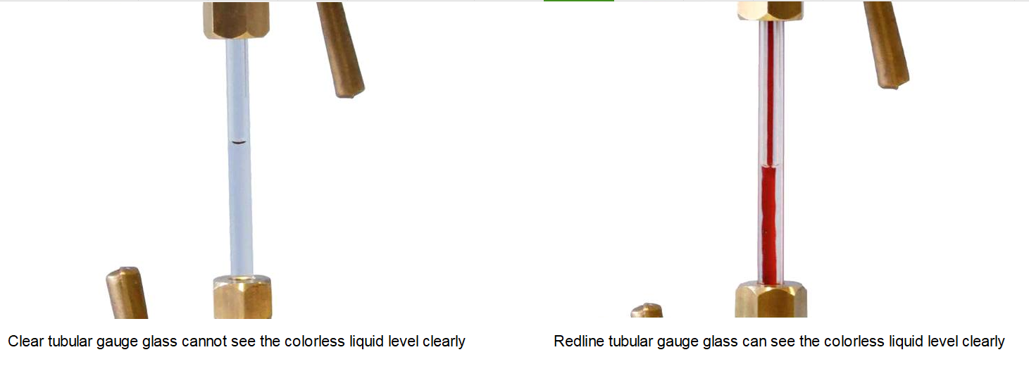 Redline tubular gauge glass also called redline gauge glass tube has a red line between two white lines which, in the presence of a colorless liquid, magnifies the red line. The bold red line makes it easier to read the liquid level.